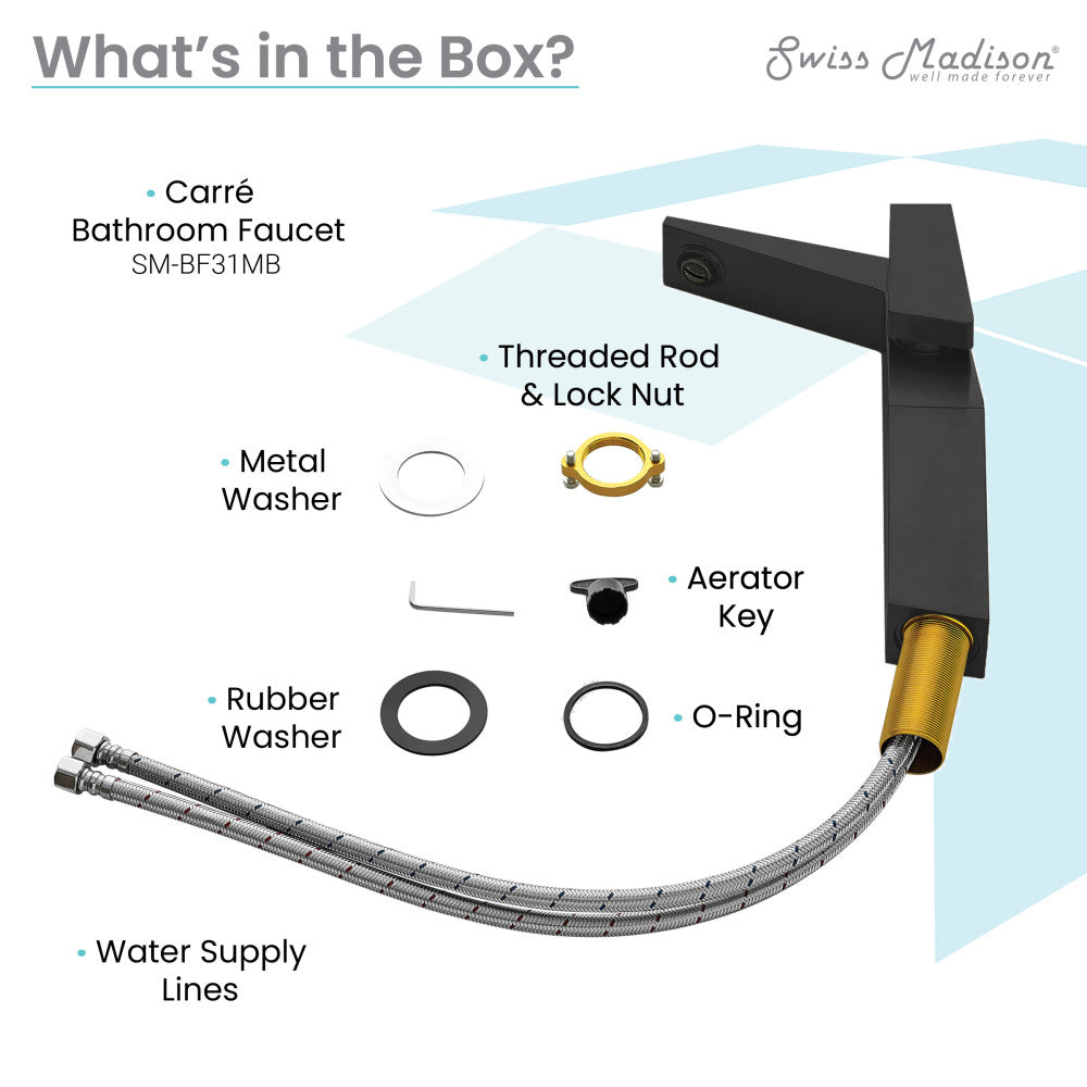 Embrace geometric balance with the Carre collection, where clean lines and modern design principles take center stage. Discover simplicity and sophistication in one with our single-handle faucets, offering smooth operation and contemporary design. Offered in black with a matte finish.