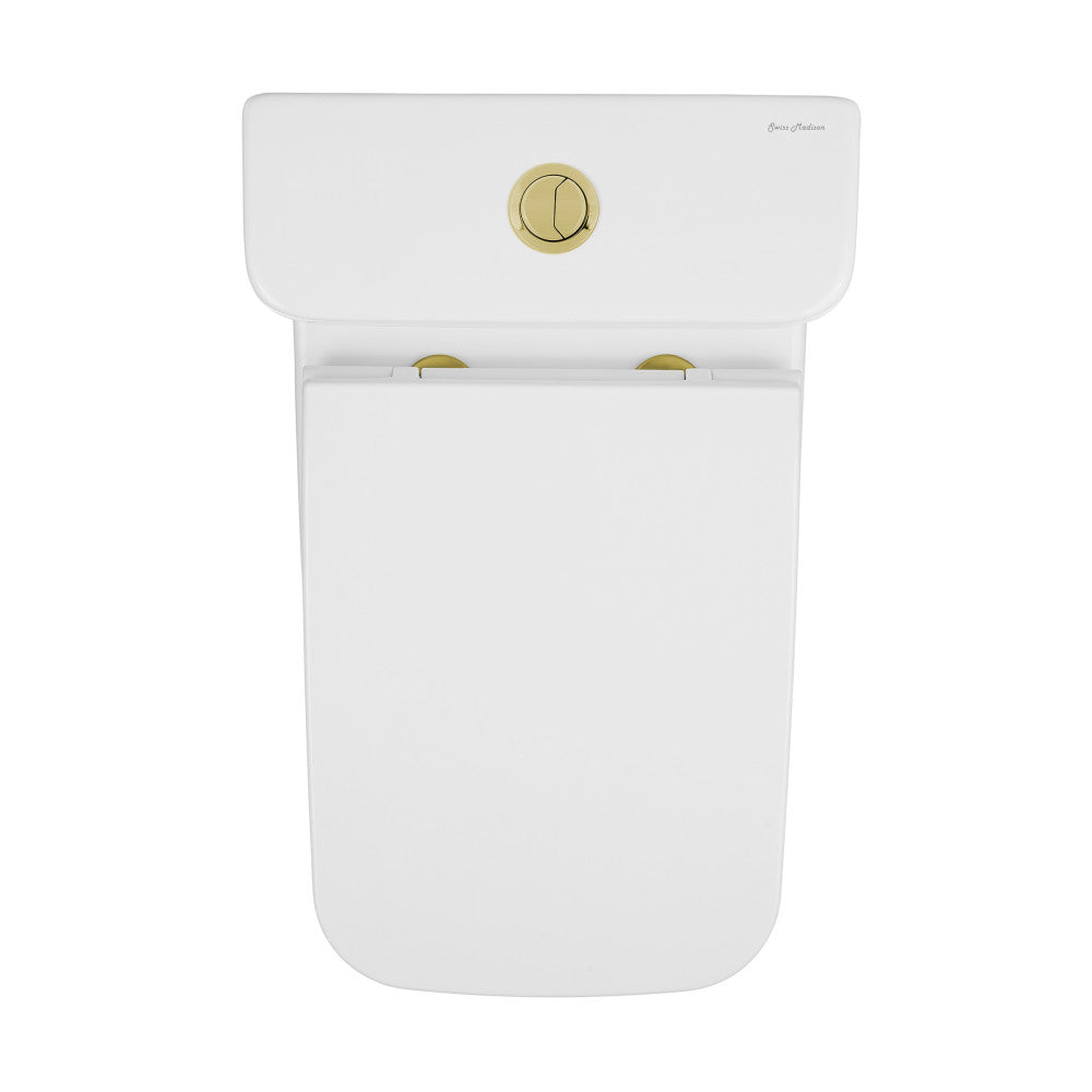 Embrace geometric balance with the Carre collection, where clean lines and modern design principles take center stage. Redefine your bathroom with our one-piece toilet, combining seamless design and functionality for a truly modern upgrade. Offered in white with a glossy finish and brushed gold hardware.