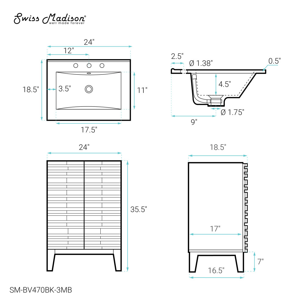 - Faucet hole: Pre-drilled standard 1 3/8"