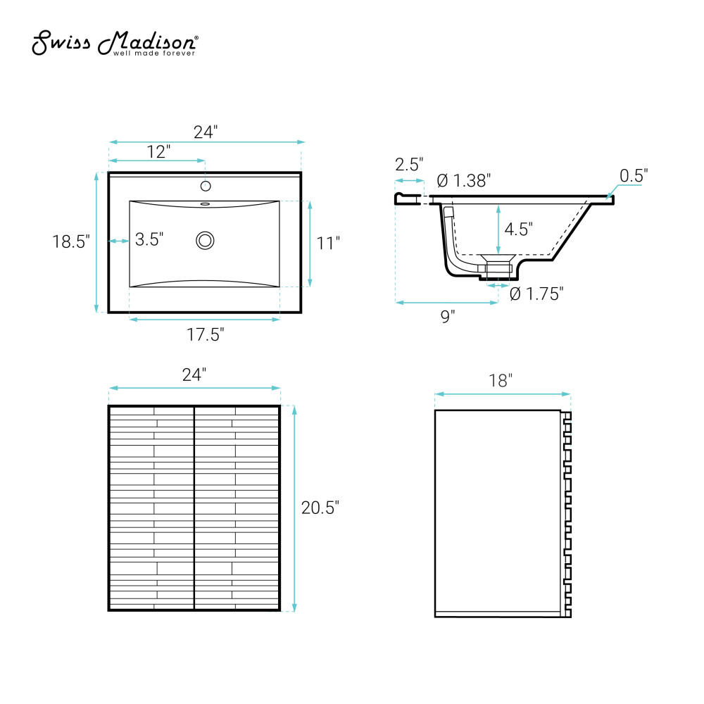 - Faucet hole: Pre-drilled standard 1 3/8"
