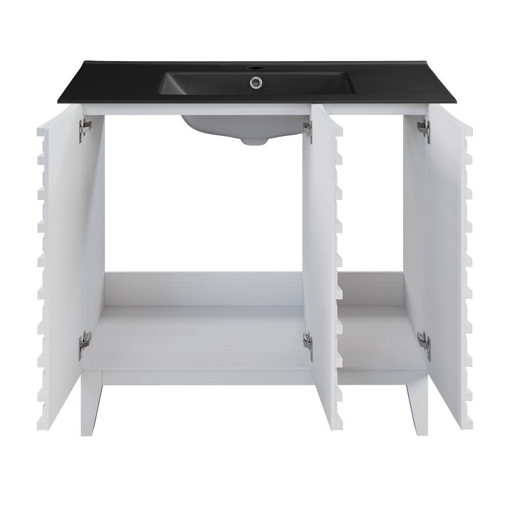Cascade 36 in. White Oak Bathroom Vanity With Black Ceramic Sink Top