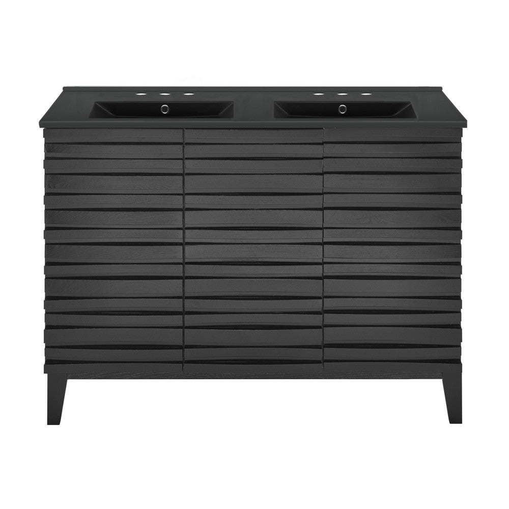 Cascade 48 in. Black Oak, Double Basin Bathroom Vanity With Black, 3-Hole Ceramic Sink Top