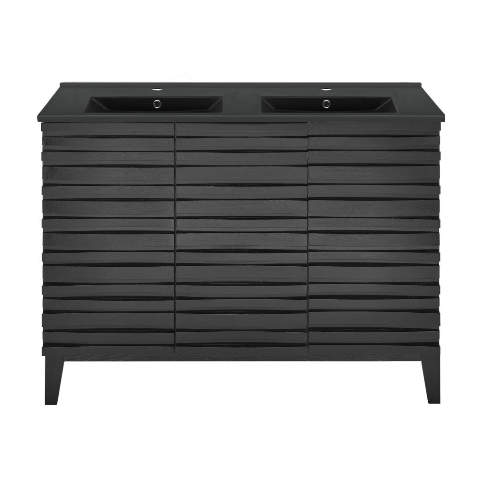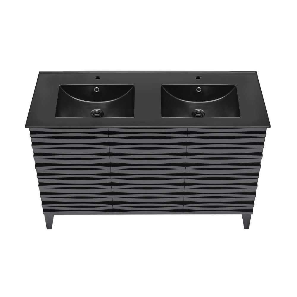 Cascade 48 in. Black Oak, Double Basin Bathroom Vanity With Black Ceramic Sink Top