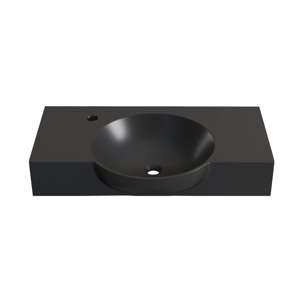 Chateau 30" Wall-Mounted Sink Center Basin with Left Side Faucet Mount in Matte Black