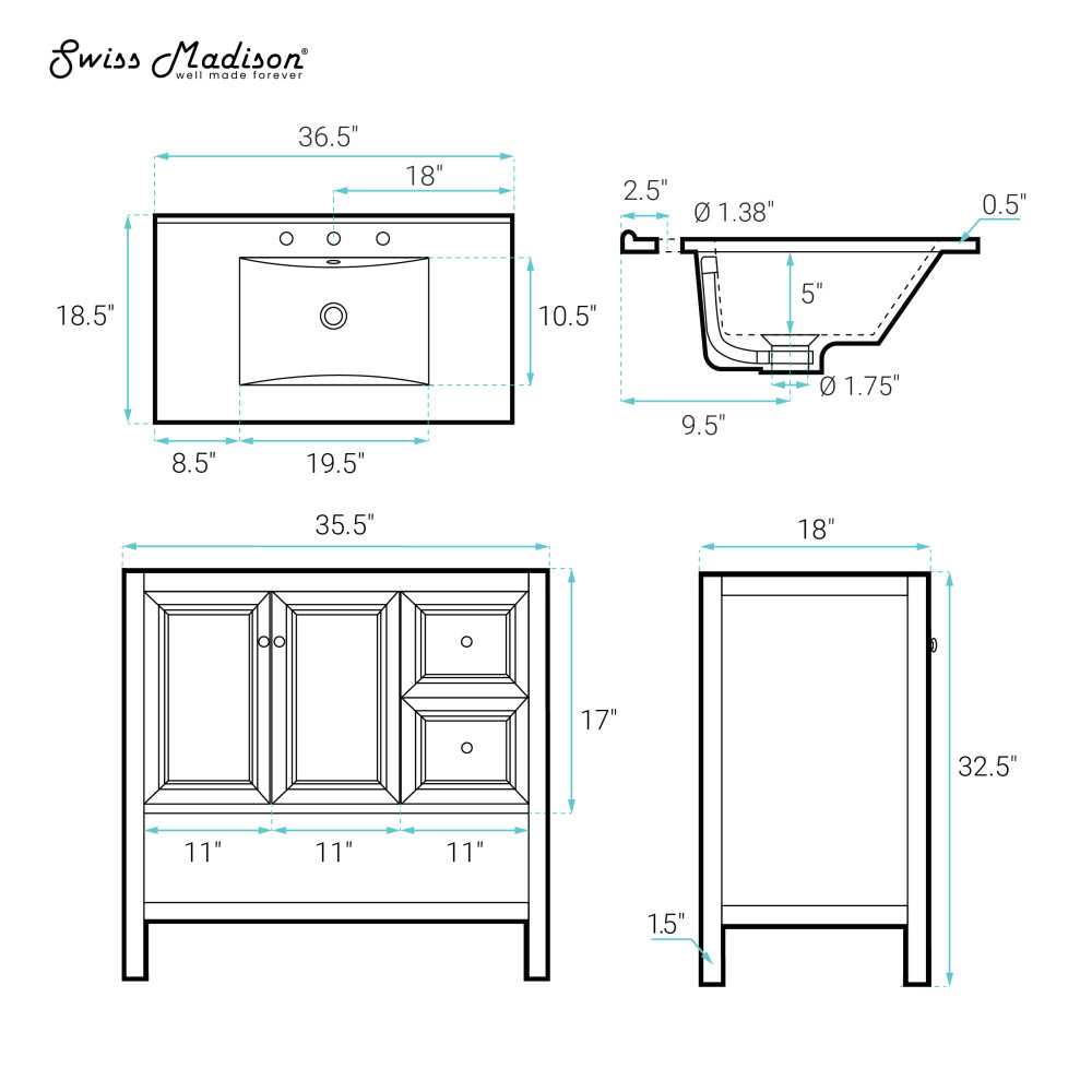 - Faucet hole: Pre-drilled standard 1 3/8"