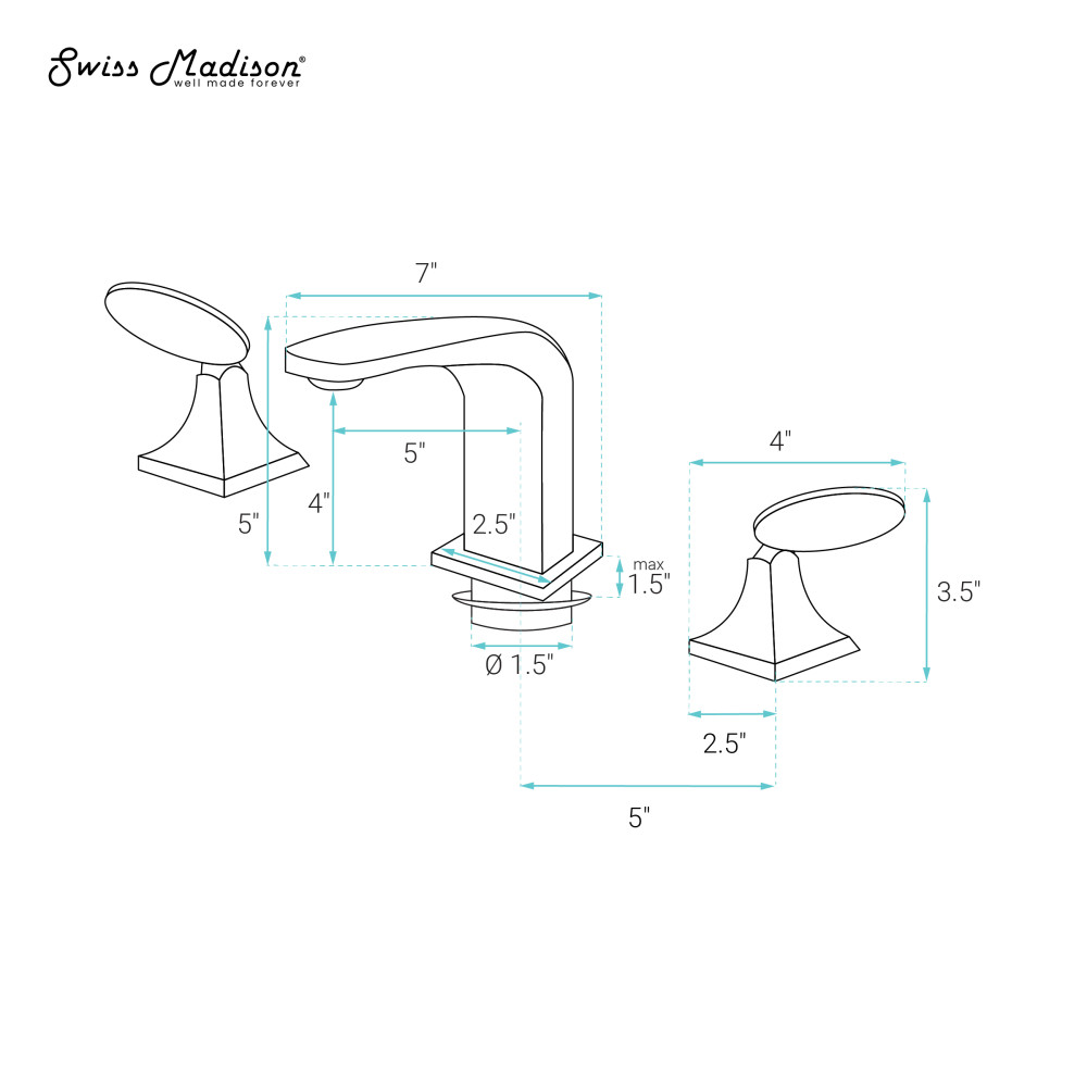 - Two Handle: Two lever handles offer separate control of hot and cold water.