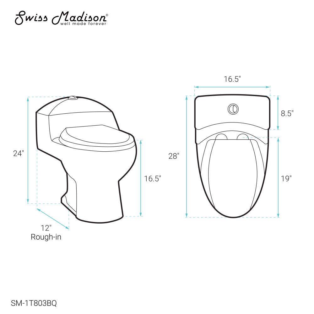 Select where you want the flush button or lever located. Side flush is on the right-hand side of the tank, left side is on the opposite, dual top offers two buttons on top, and touchless uses sensor technology. Swiss Madison Toilet Guide