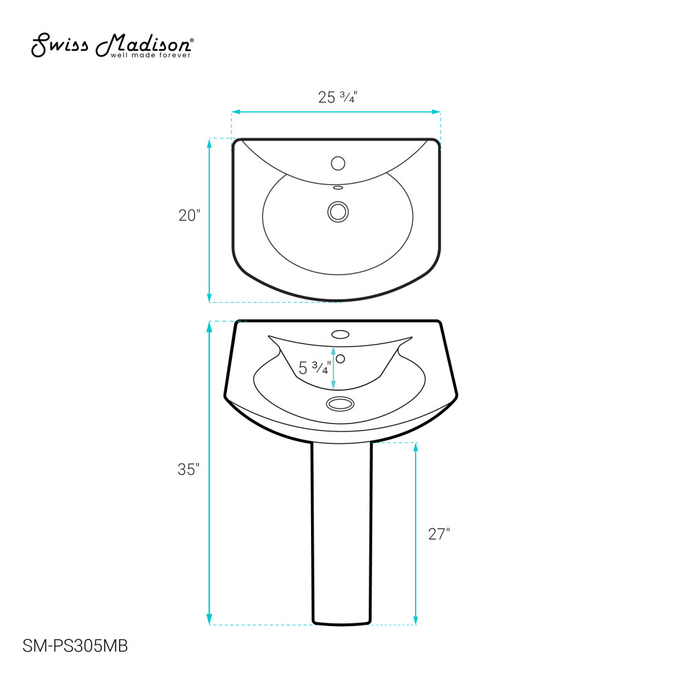 Transform your living spaces into regal abodes with the Chateau collection, embracing grandeur and comfort in every detail. Infuse your bathroom with timeless grace with a pedestal sink, capturing a sense of classic elegance that never goes out of style. Offered in black with a matte finish.