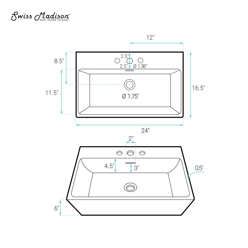 - Basin Depth: 4.13 inches.