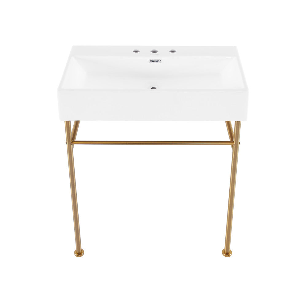 Claire 30" Console Sink White Basin Brushed Gold Legs with 8" Widespread Holes