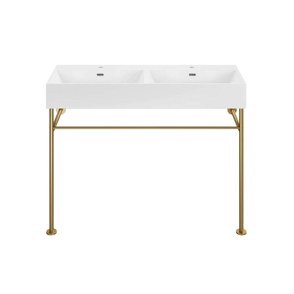 Claire 48" Double Basin Console Sink with Brushed Gold Legs