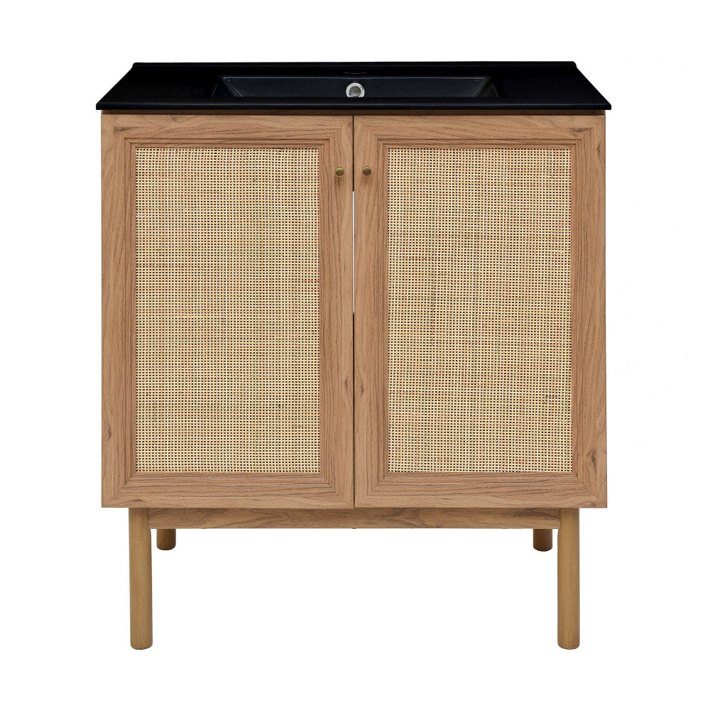 Classe 30" Freestanding Bathroom Vanity in Golden Oak with Black Sink Top