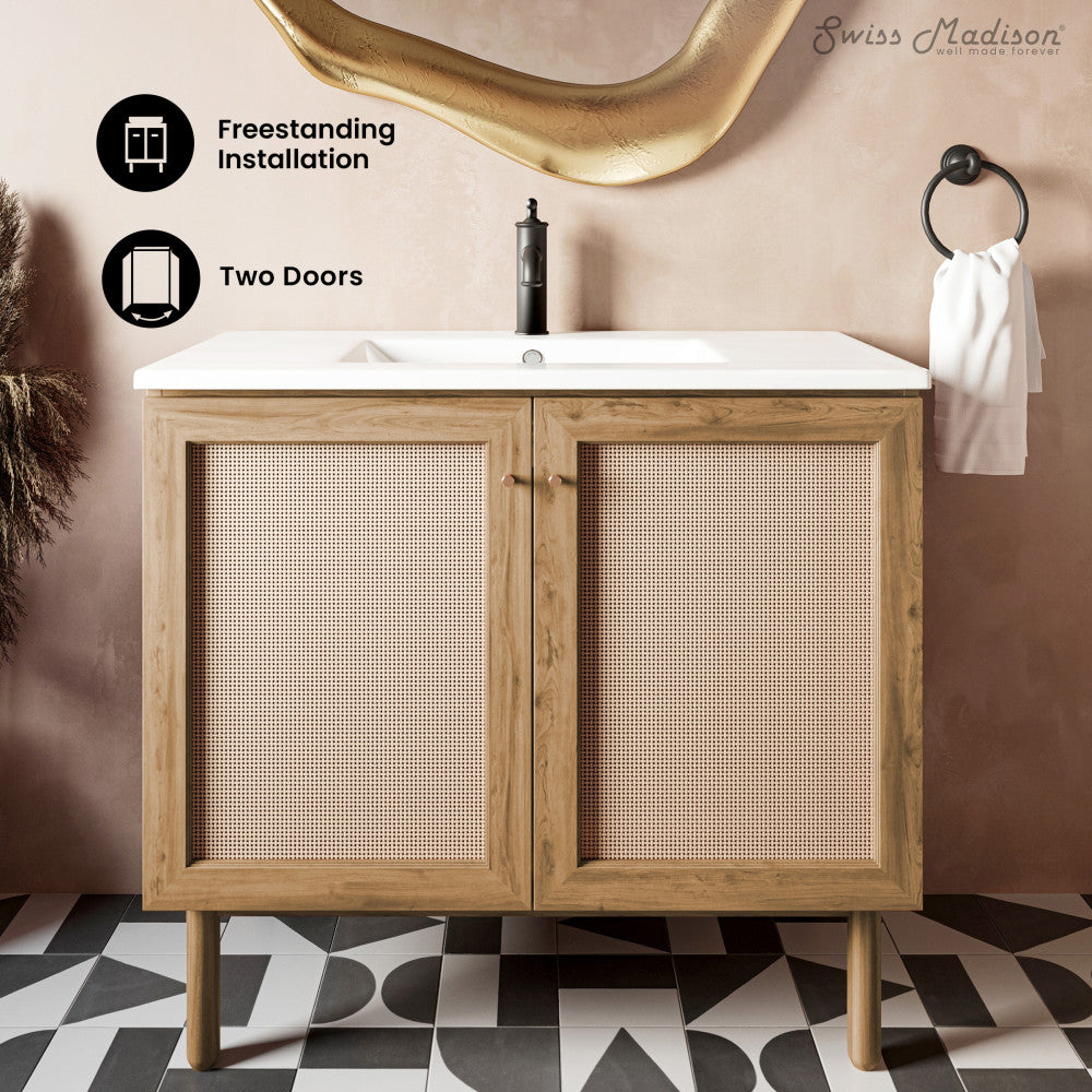 Classe 36" Freestanding Bathroom Vanity in Golden Oak with Sink Top
