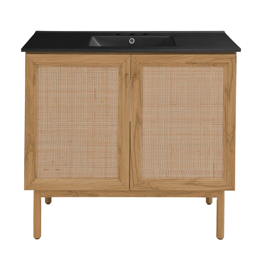 Classe 36" Freestanding Bathroom Vanity in Golden Oak with Black 3-Hole Widespread Sink Top