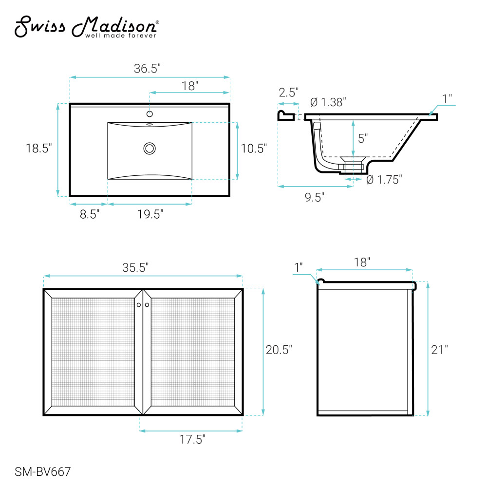 - 2 Doors: Vanities offering two soft closing doors enhances your space with slam-free technology and creates an upscale appearance
