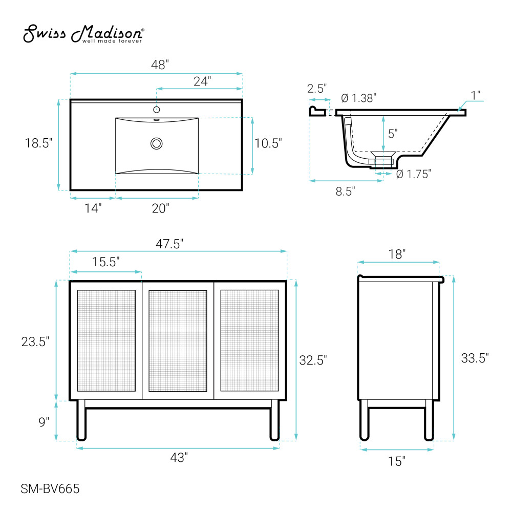 - Faucet hole: Pre-drilled standard 1 3/8"
