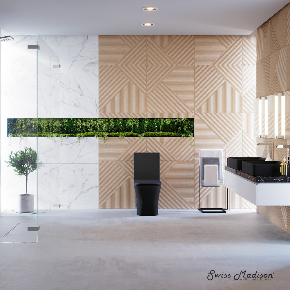 Discover the allure of modern opulence with the Concorde collection, where sleek designs and luxurious materials evoke a sense of opulence. Redefine your bathroom with our one-piece toilet, combining seamless design and functionality for a truly modern upgrade. Offered in black with a matte finish.