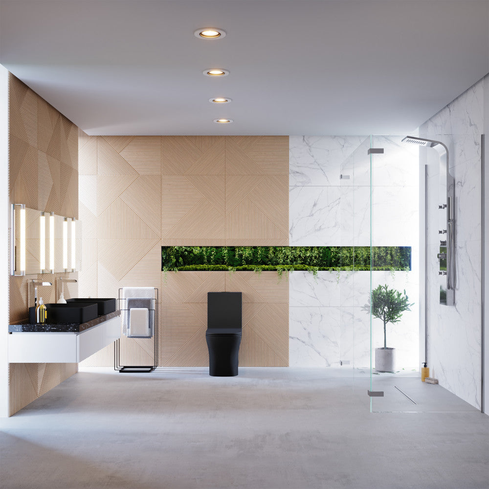 Discover the allure of modern opulence with the Concorde collection, where sleek designs and luxurious materials evoke a sense of opulence. Redefine your bathroom with our one-piece toilet, combining seamless design and functionality for a truly modern upgrade. Offered in black with a matte finish and black hardware.