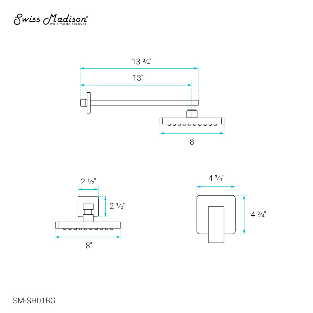 Concorde Single-Handle 1 Spray 8" Wall Mounted Fixed Shower Head in Brushed Gold (Valve Included)