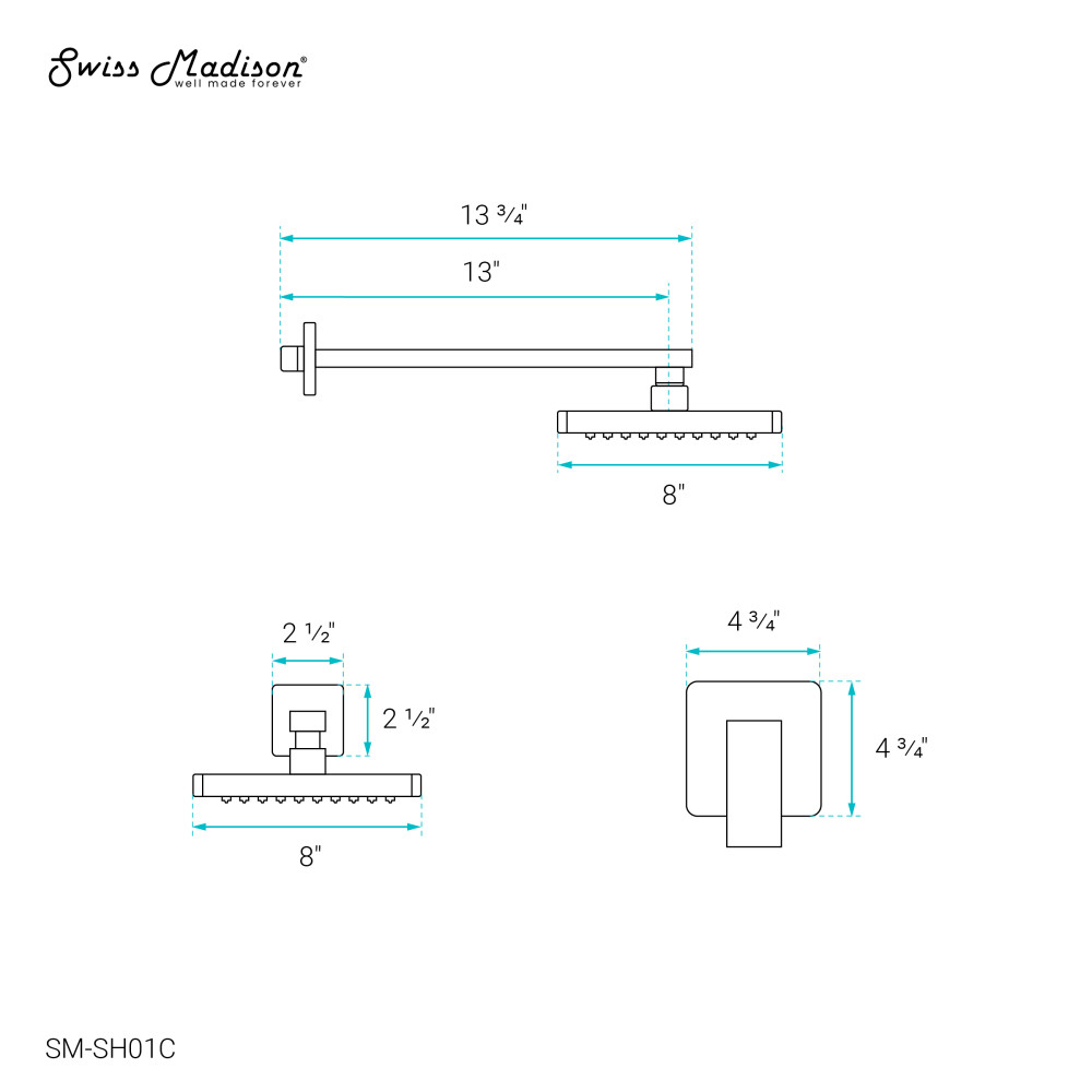 Concorde Single-Handle 1 Spray 8" Wall Mounted Fixed Shower Head in Chrome (Valve Included)