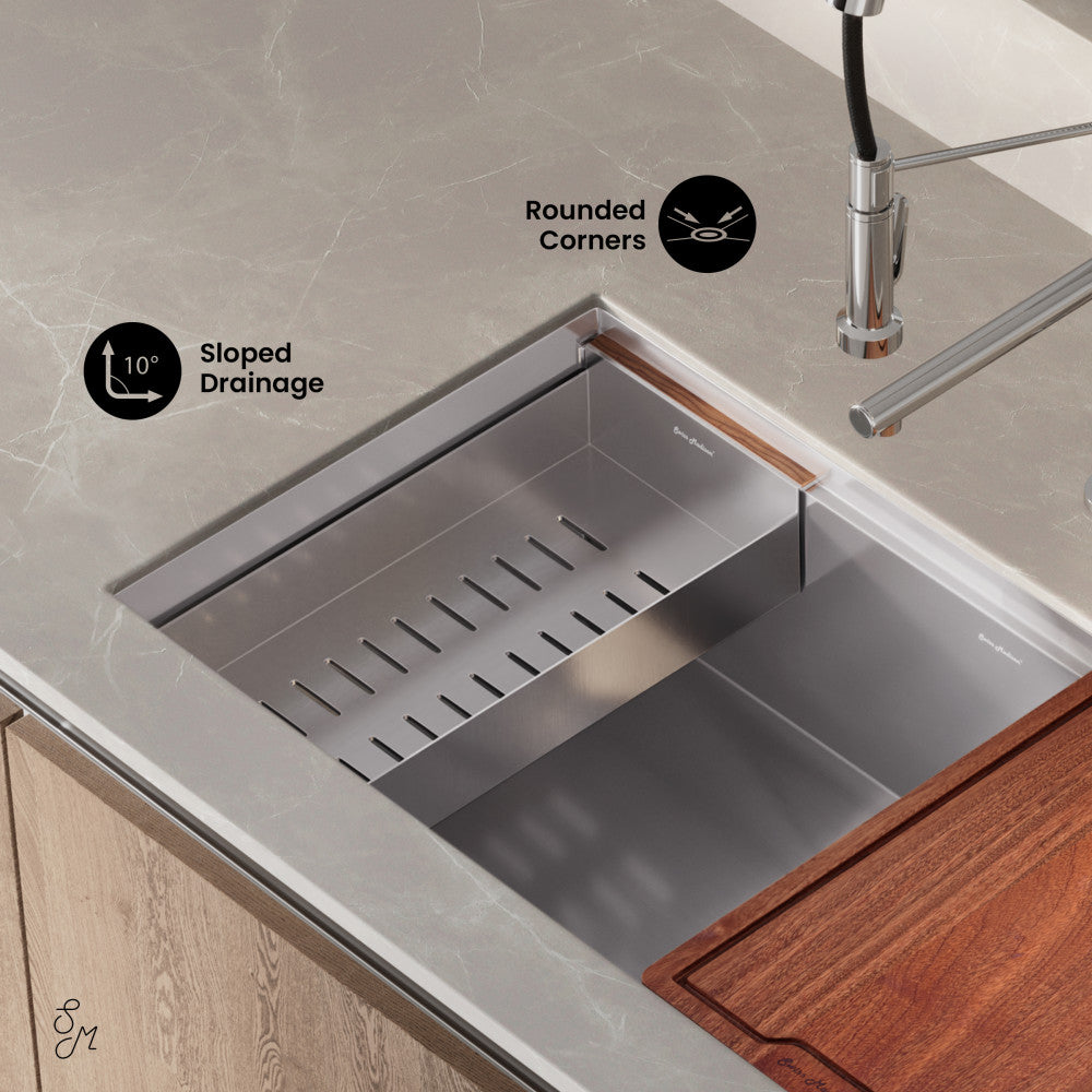 - Undermount Installation: Designed to fit beneath the countertop and cabinetry to provide a seamless look.