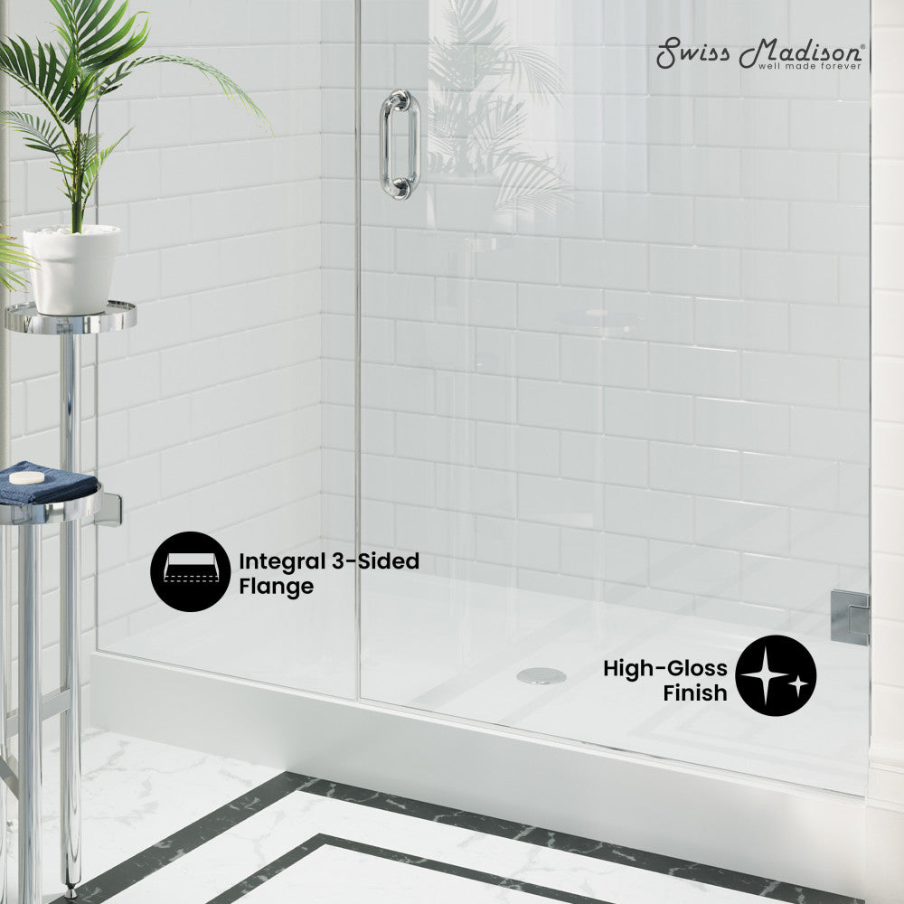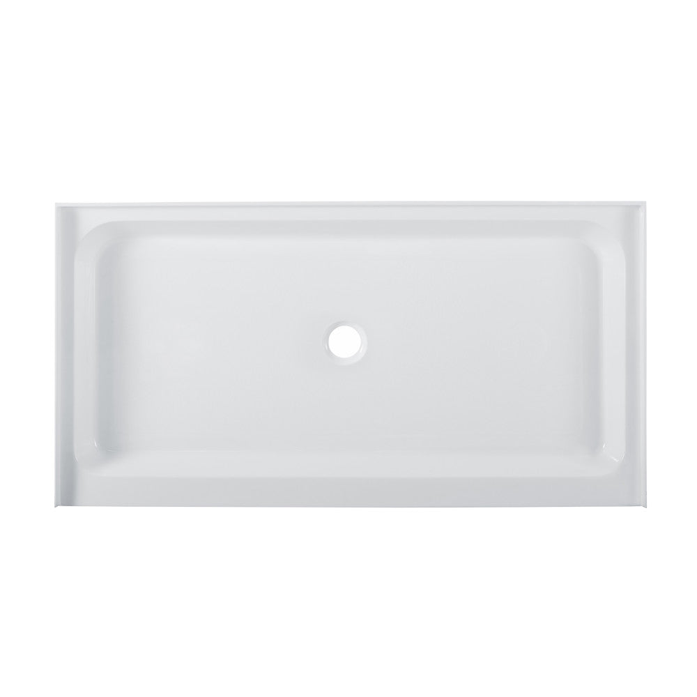 Voltaire 60" x 32" Acrylic White, Single-Threshold, Center Drain, Shower Base