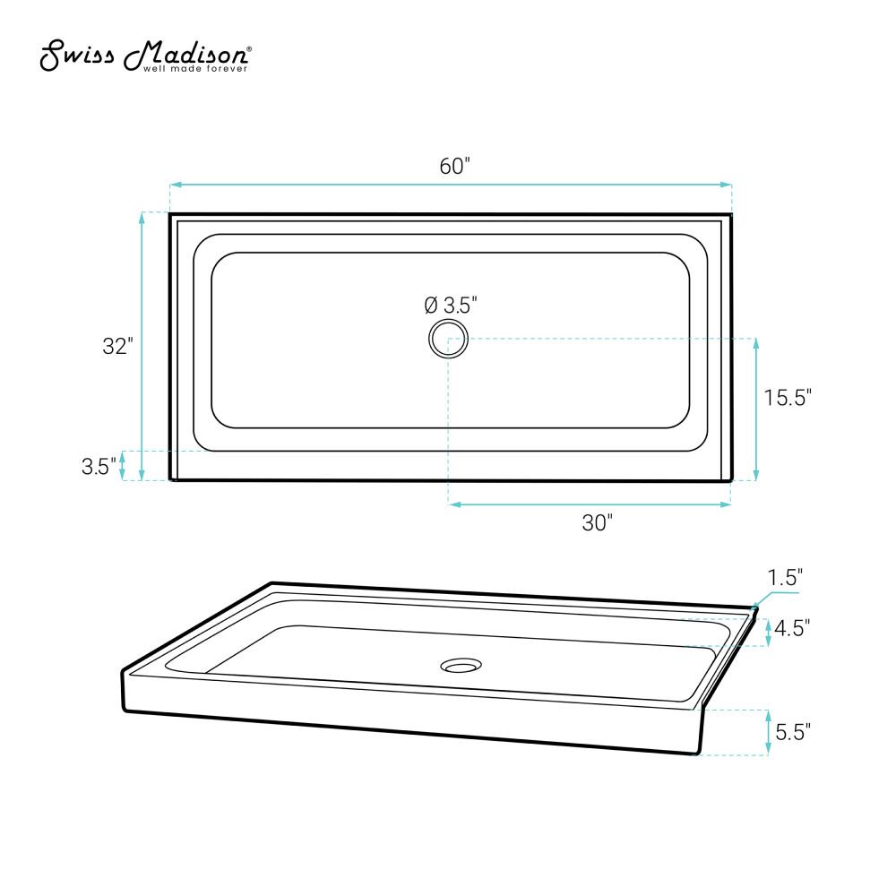 - Sold Separately: Shower drain is not included.
