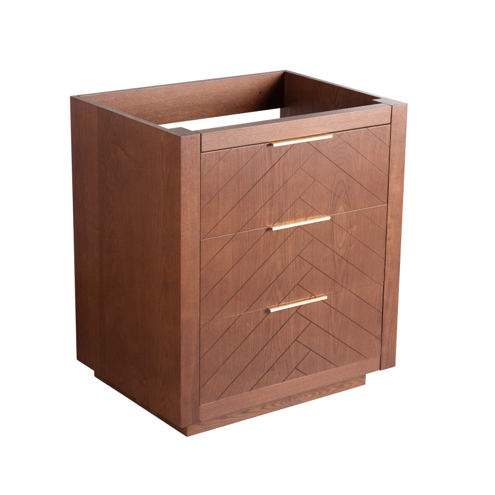 Experience urban sophistication with the Daxton collection, where modern aesthetics and functional design converge. Tailor your bathroom to perfection with our cabinets-only vanities, offering customizable vanity top solutions to integrate with your design vision. Offered in brown oak.