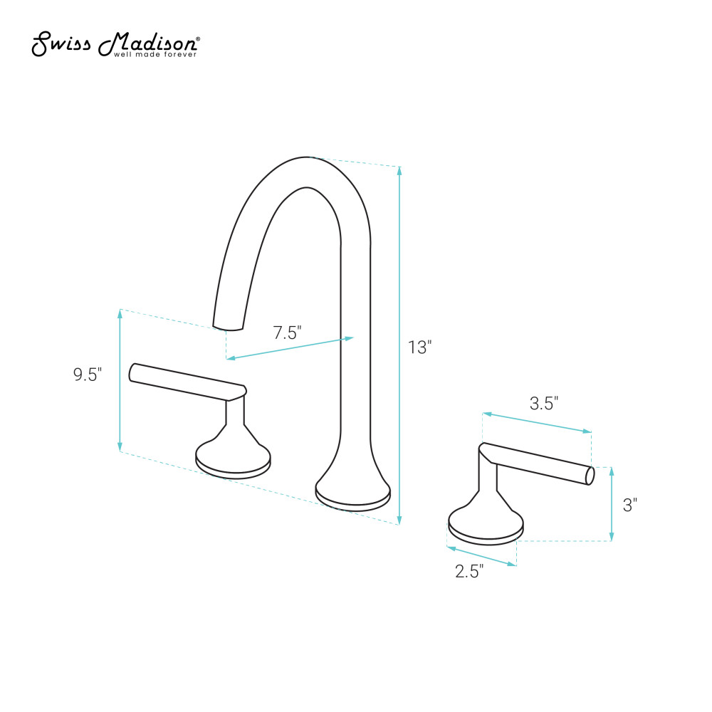 - Two Handle: Two lever handles offer separate control of hot and cold water.