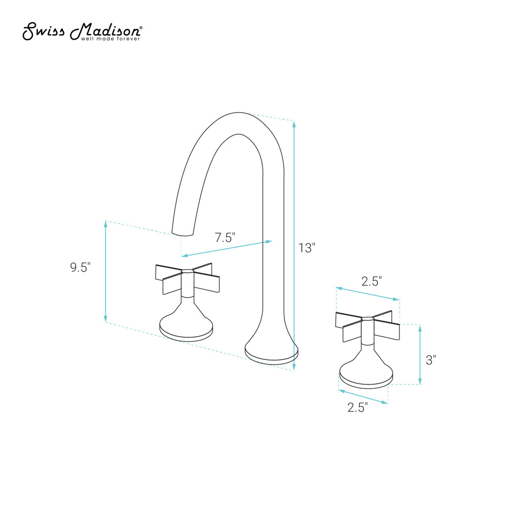 - Two Handle: Two lever handles offer separate control of hot and cold water.