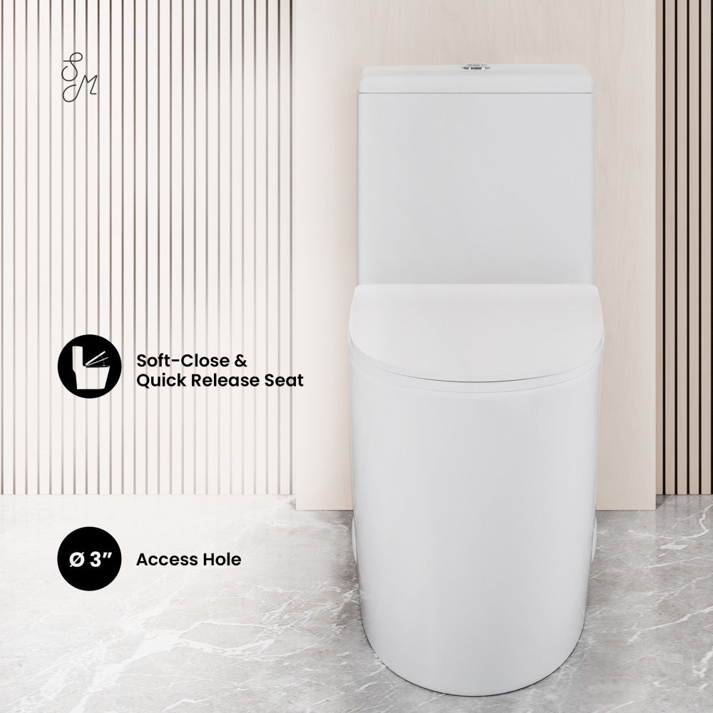 • Soft Close and Quick Release Seat: Provides a silent and gentle closing mechanism for added convenience and safety. With just the push of a button, the seat detaches completely for a thorough cleaning.
