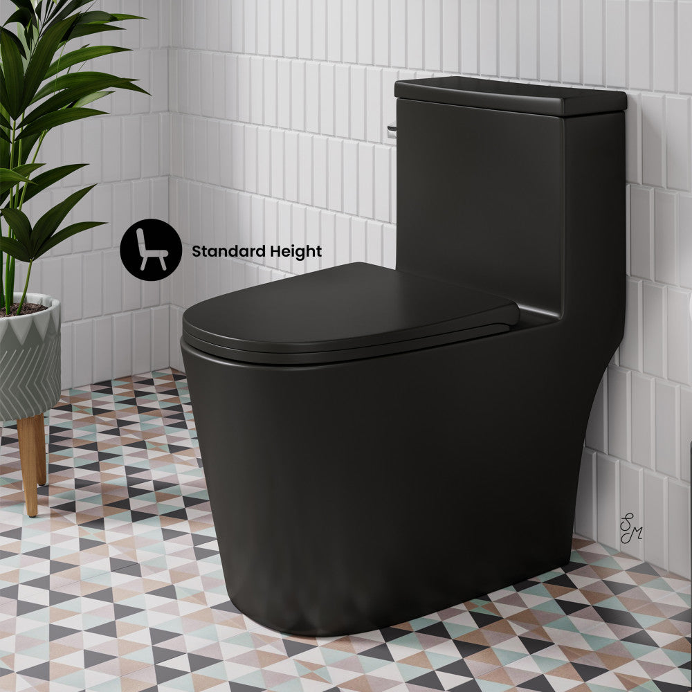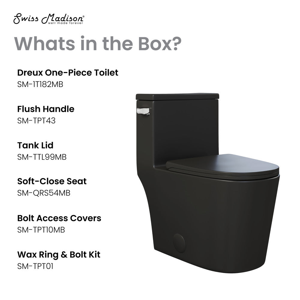 Dreux One-Piece 12" Rough-in 1.28 GPF Left Flush Elongated Toilet in Matte Black