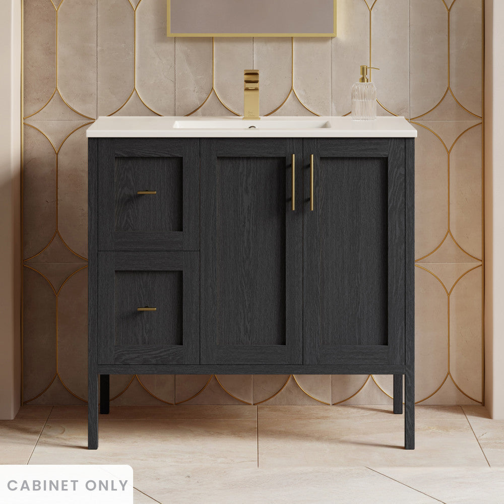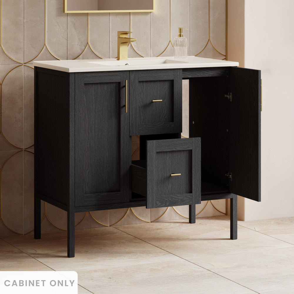 - Configuration: Vanity cabinets offering two soft closing doors and two drawers enhances your space with slam-free technology, additional storage space and creates an upscale appearance.
