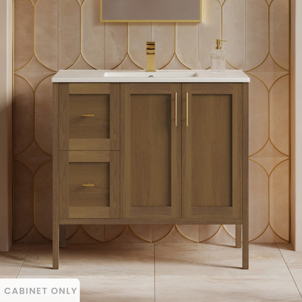 - Freestanding Installation: Freestanding vanities offer flexible installtion to best suit your bathroom layout