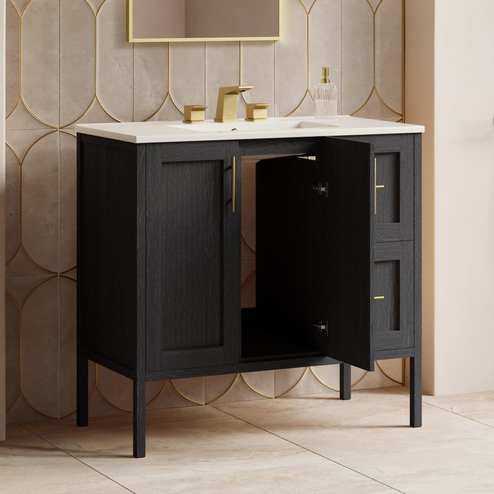 - Configuration: Vanity cabinets offering two soft closing doors and two drawers enhances your space with slam-free technology, additional storage space and creates an upscale appearance.