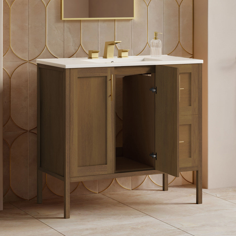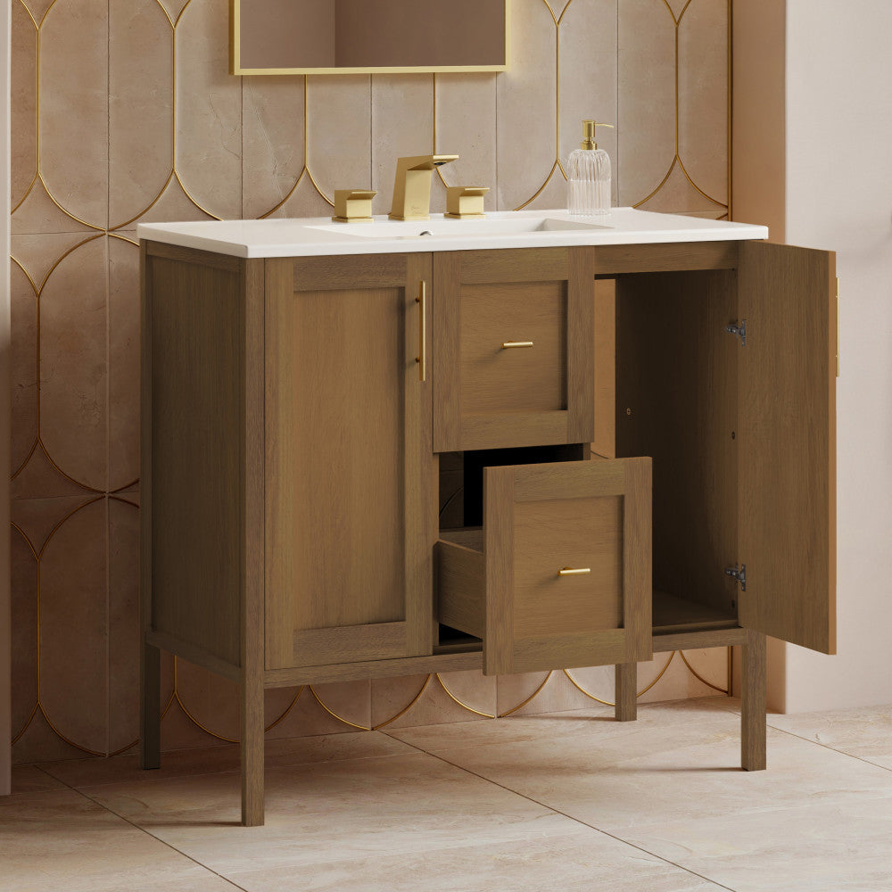 - Configuration: Vanity cabinets offering two soft closing doors and two drawers enhances your space with slam-free technology, additional storage space and creates an upscale appearance.