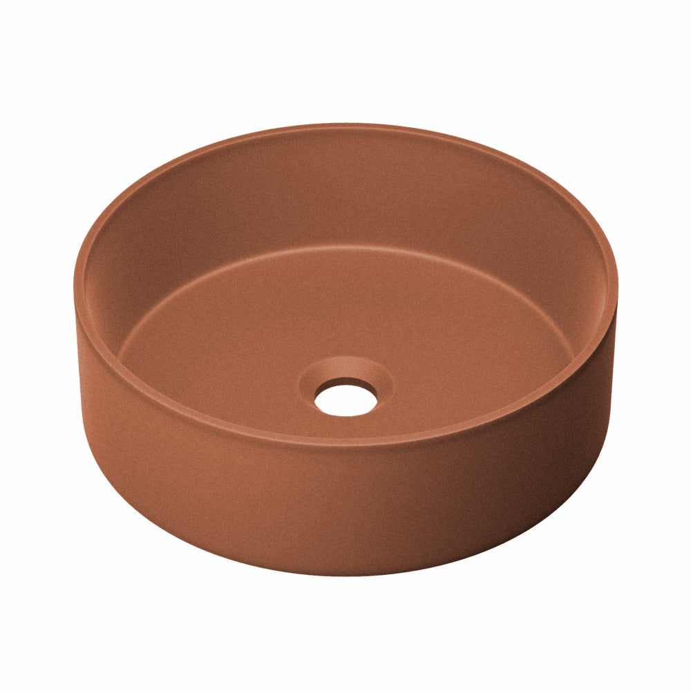 Discover the Lisse collection, where smooth surfaces and sleek lines create an atmosphere of streamlined elegance. Elevate your bathroom aesthetic with our vessel sinks, blending artistry and utility to create a stunning statement piece. Offered in Terracotta with a Matte Finish.