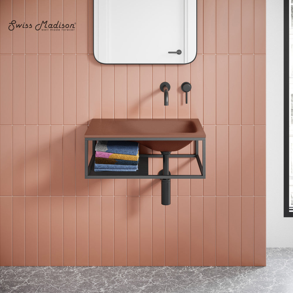 Lisse 24" Rectangle Concrete Wall-Mount Bathroom Sink in Terracotta with Matte Black Frame