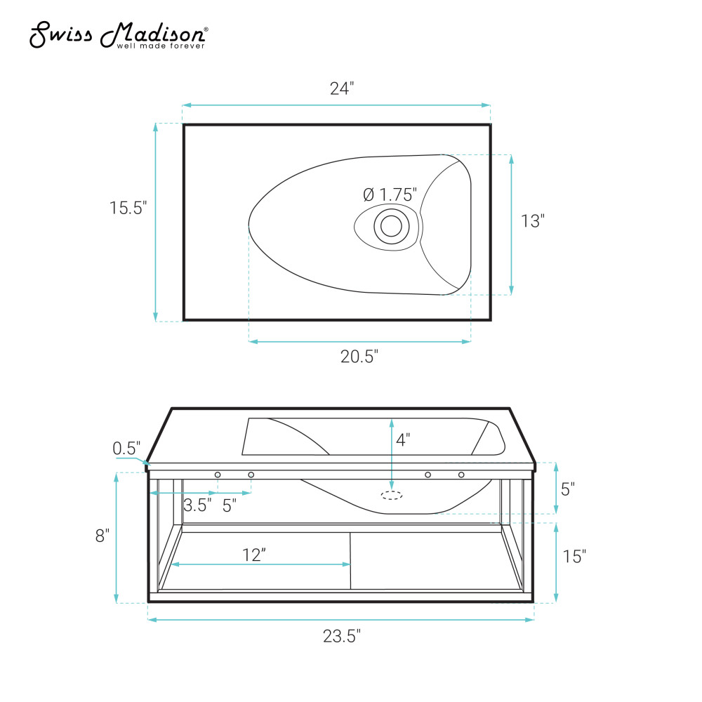 - Sold Separately: Standard 1.75" drain and faucet are not included