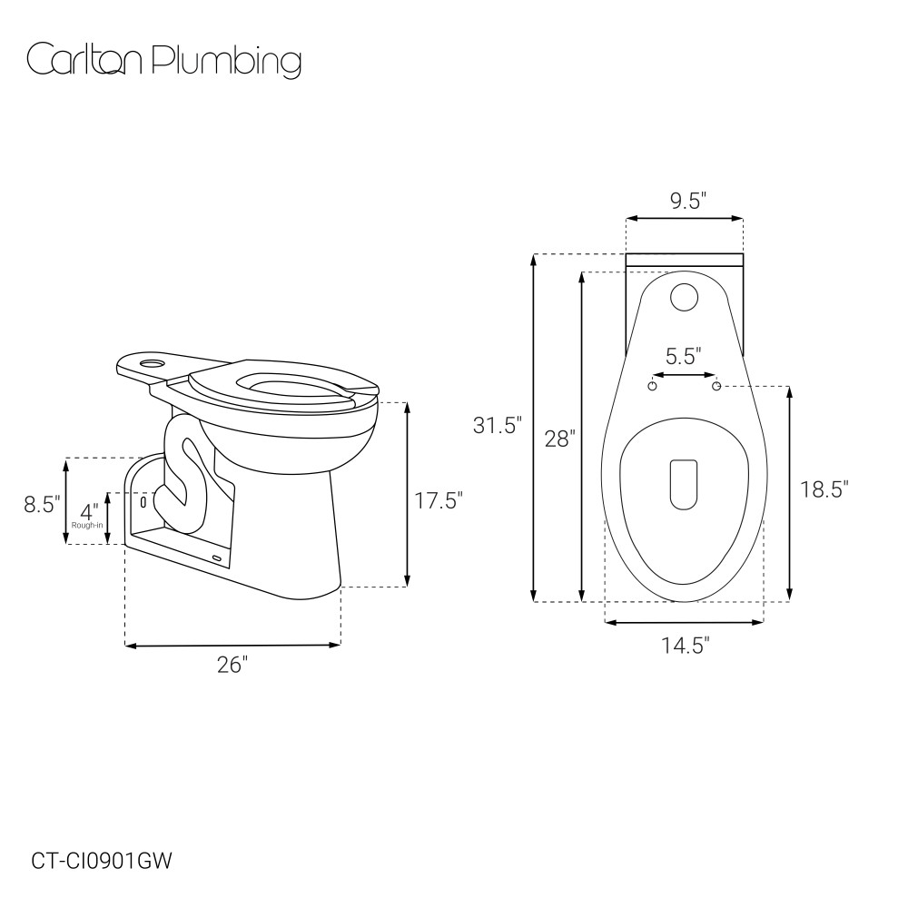 - 1.5" Top Spud: Commercial toilets featuring a 1.5" top spud offers space efficiency, commercial durability, and ease of maintenance.