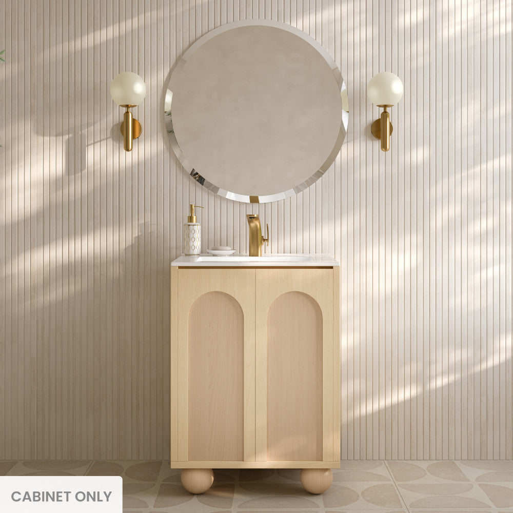 Infuse your home with the joyous essence of the Plaisir collection, where comfort and style converge effortlessly. Tailor your bathroom to perfection with our cabinets-only vanities, offering customizable vanity top solutions to integrate with your design vision. Offered in natural oak.