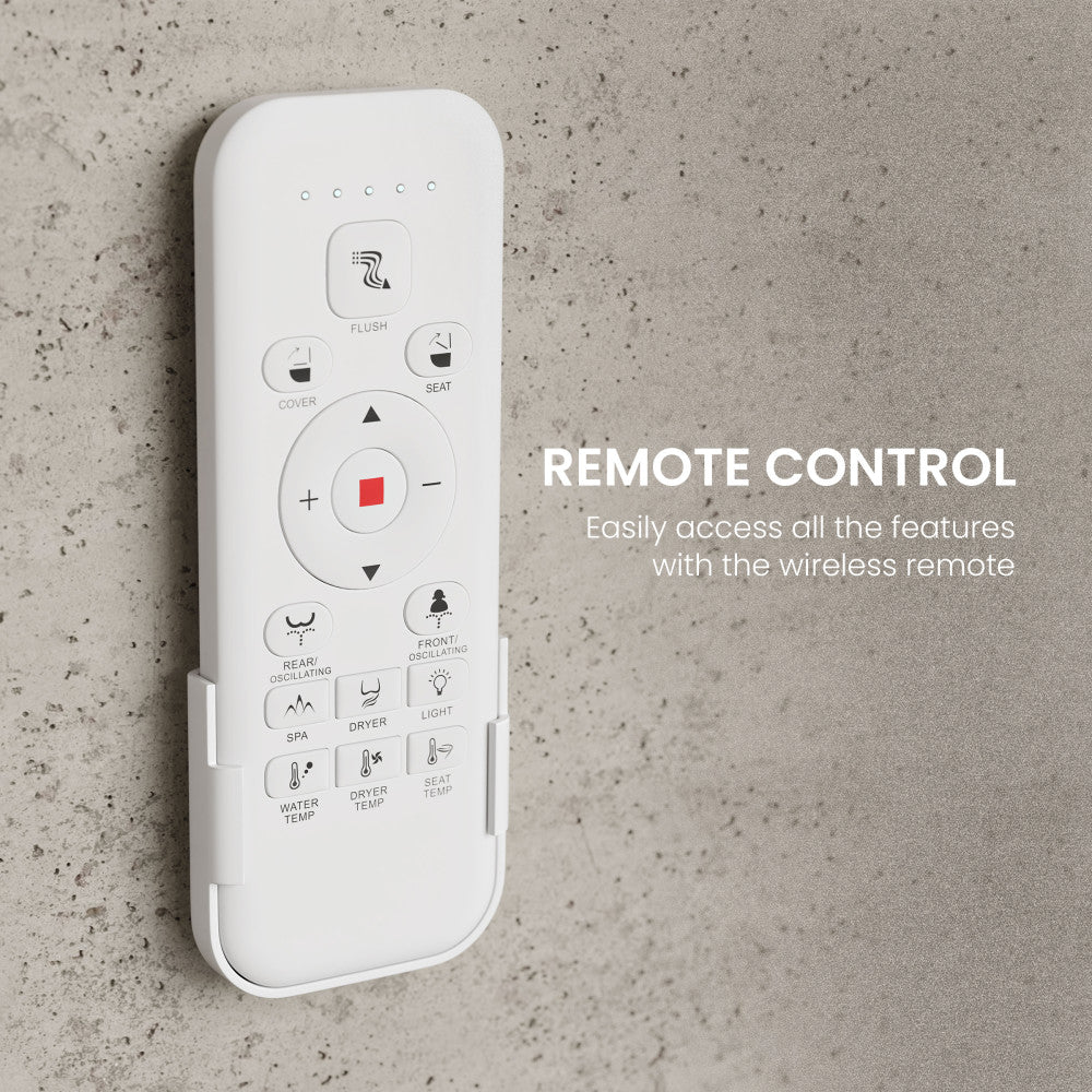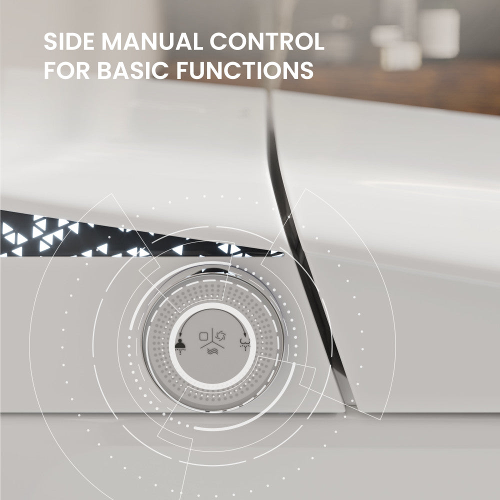 - Remote and Side Control Options: Full remote control and an integrated side panel to easily manage bidet functions directly from the side of the seat