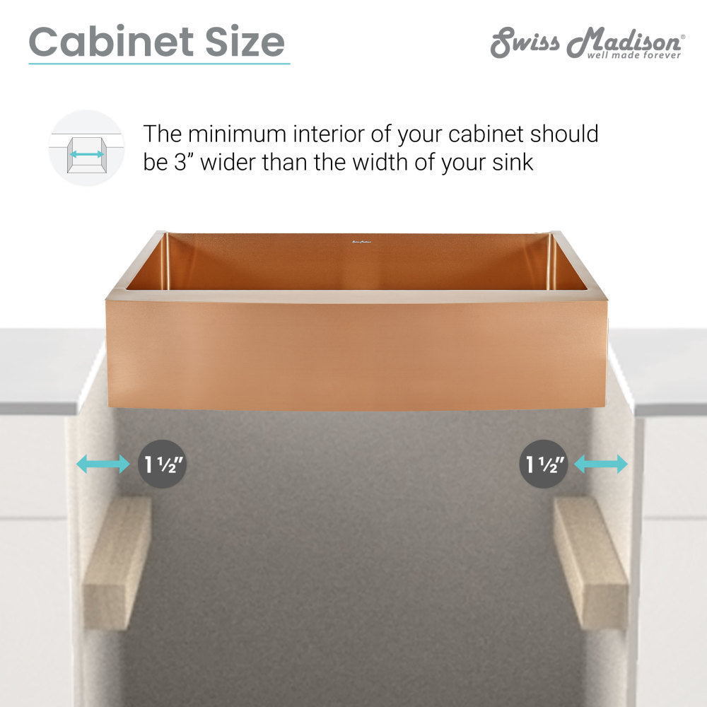 - Cabinet Size: The minimum interior of your cabinet should be 3" wider than the width of your sink.