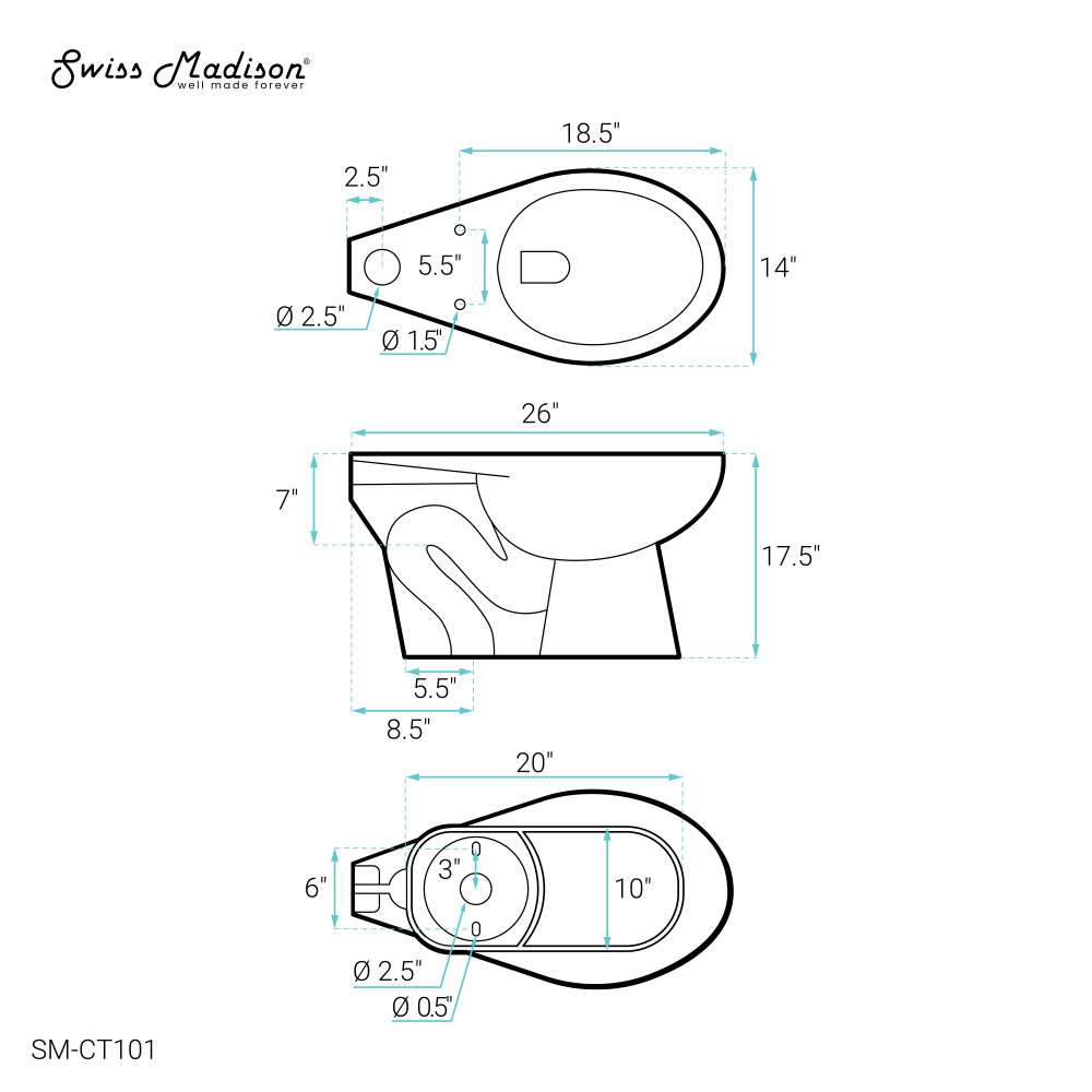 Swiss Madison offers 4 general bidet options: