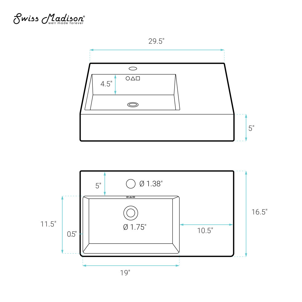 - Single Faucet Hole: Pre-drilled standard 1 3/8" Single Faucet Hole