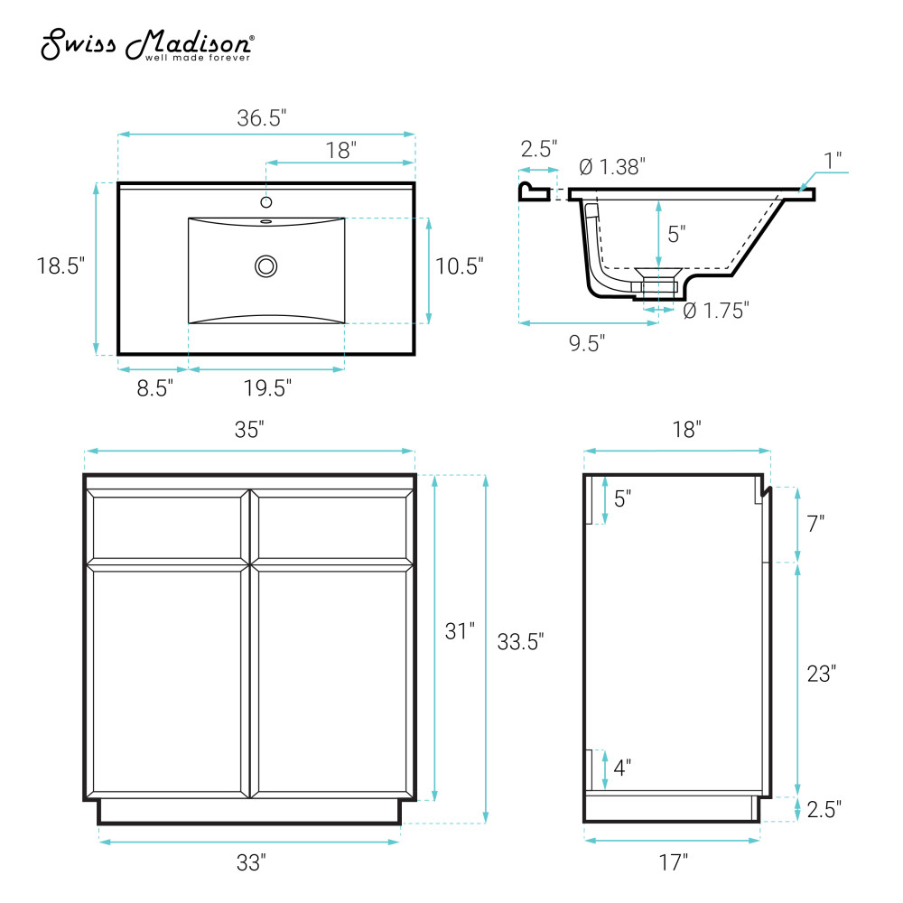 • 2 Doors and 1 Shelf: Vanities offering two soft closing doors and one shelf enhances your space with slam-free technology, additional storage space and creates an upscale appearance