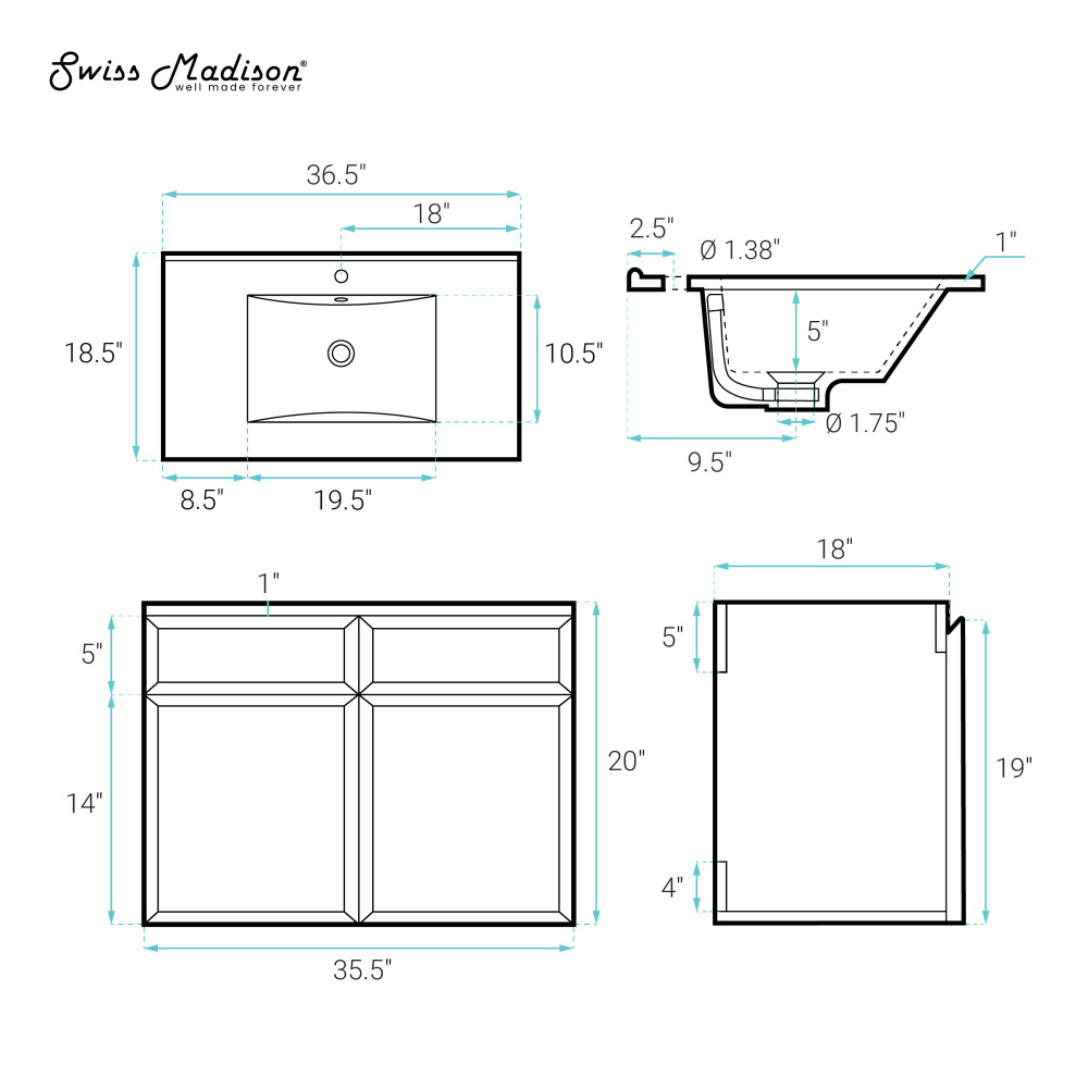 - Faucet hole: Pre-drilled standard 1 3/8”