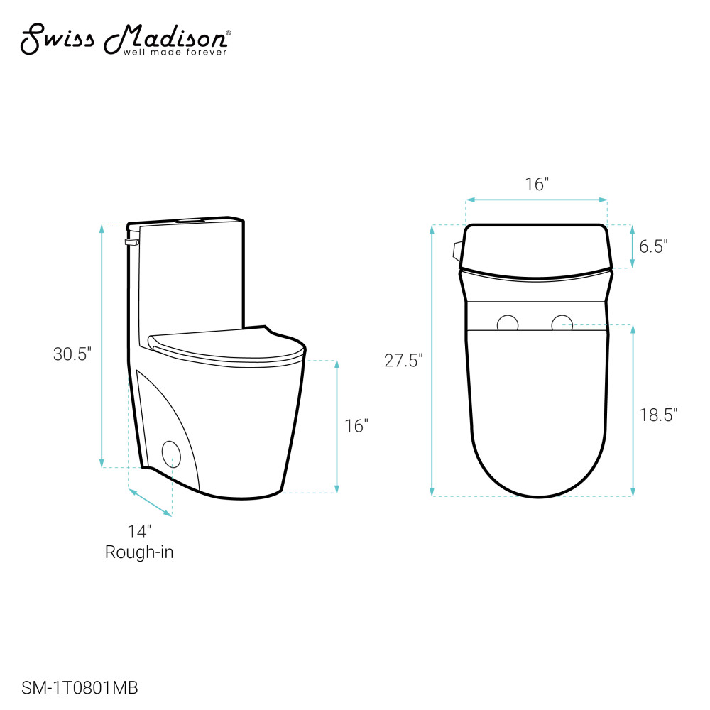 Select where you want the flush button or lever located. Side flush is on the right-hand side of the tank, left side is on the opposite, dual top offers two buttons on top, and touchless uses sensor technology. Swiss Madison Toilet Guide