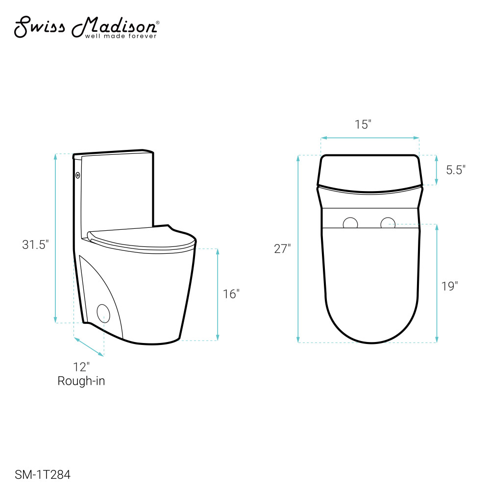 Select where you want the flush button or lever located. Side flush is on the right-hand side of the tank, left side is on the opposite, dual top offers two buttons on top, and touchless uses sensor technology. Swiss Madison Toilet Guide