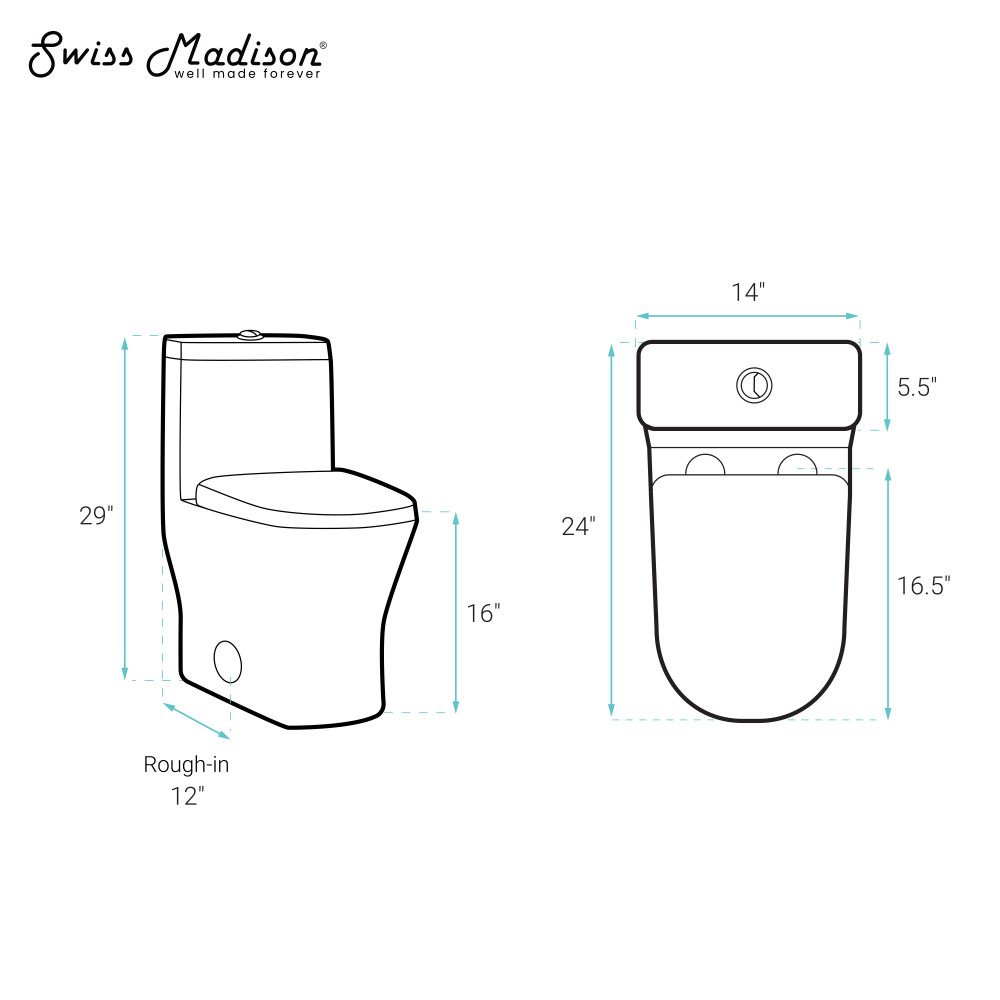 Select where you want the flush button or lever located. Side flush is on the right-hand side of the tank, left side is on the opposite, dual top offers two buttons on top, and touchless uses sensor technology. Swiss Madison Toilet Guide